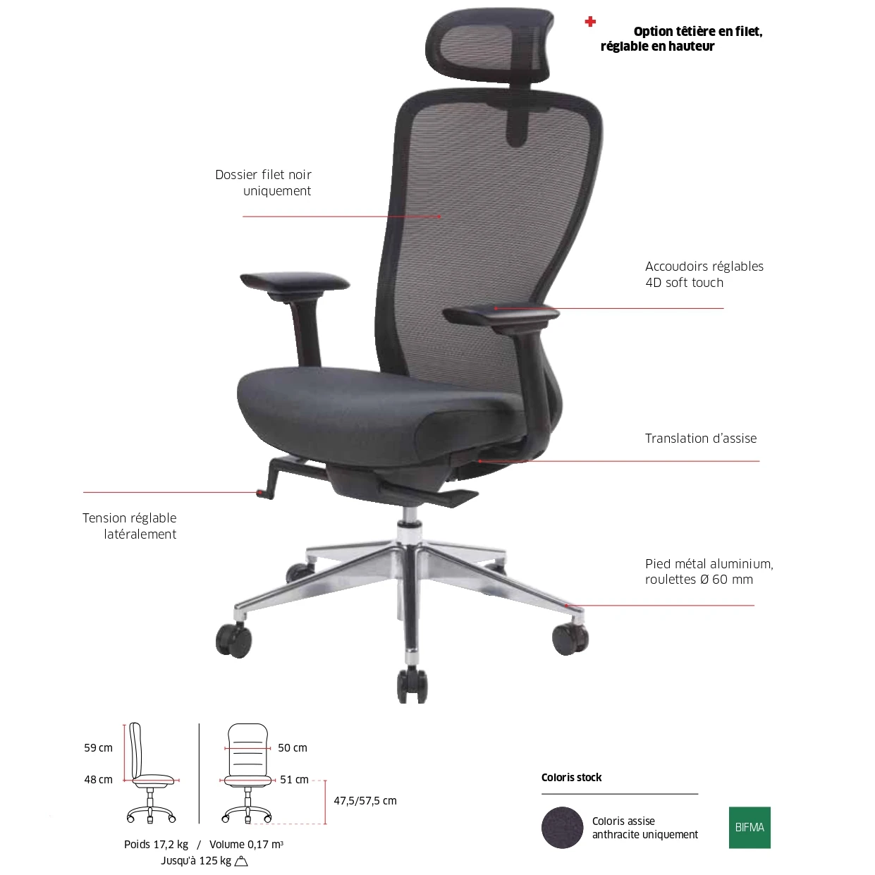 - Pied aluminium poli, roulettes Ø 60 mm.